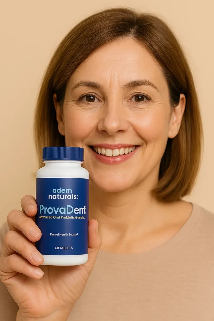 “As a woman over 55, I know how terrifying it can be to sit in the dentist’s chair and hear bad news about your gums. I recently discovered ProvaDent, and I have to say – I was intrigued. The idea of using a simple, chewable probiotic to break down harmful biofilm and restore oral health seemed like exactly what I needed.